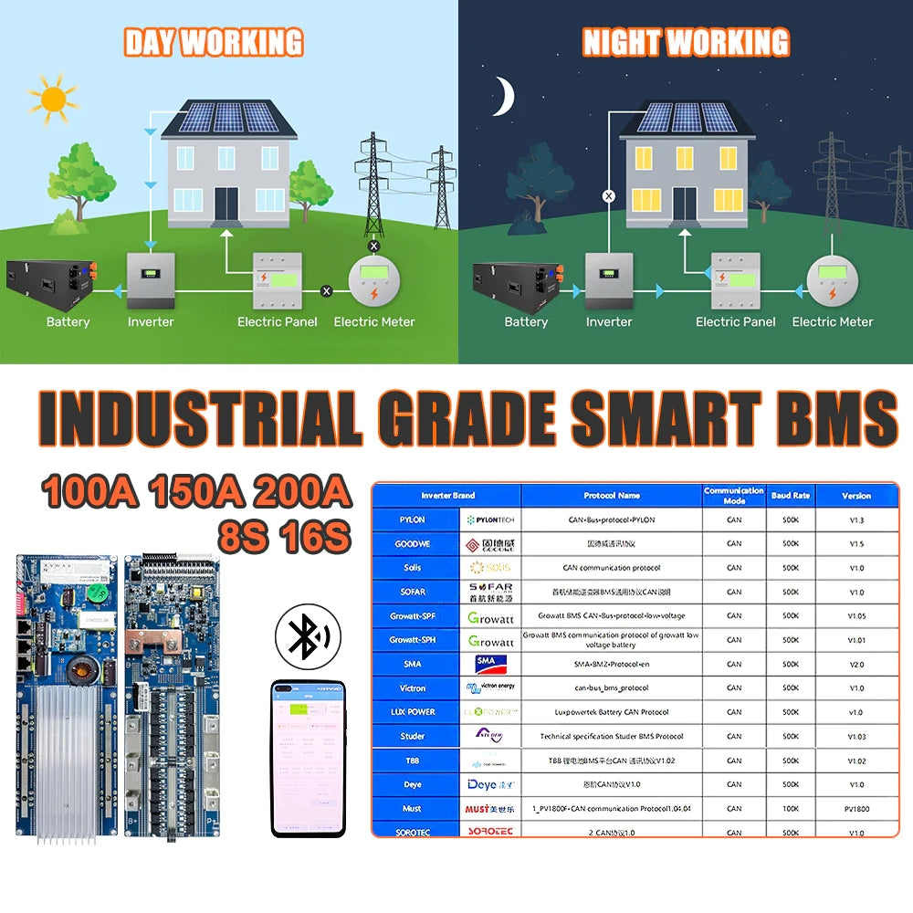 48V-51.2V Server Rack Fully Assembled Lifepo4 Battery Pack 10-15Kwh 16S LFP Battery 200A BMS For Home Power,Solar Energy,RV, PV,Boat