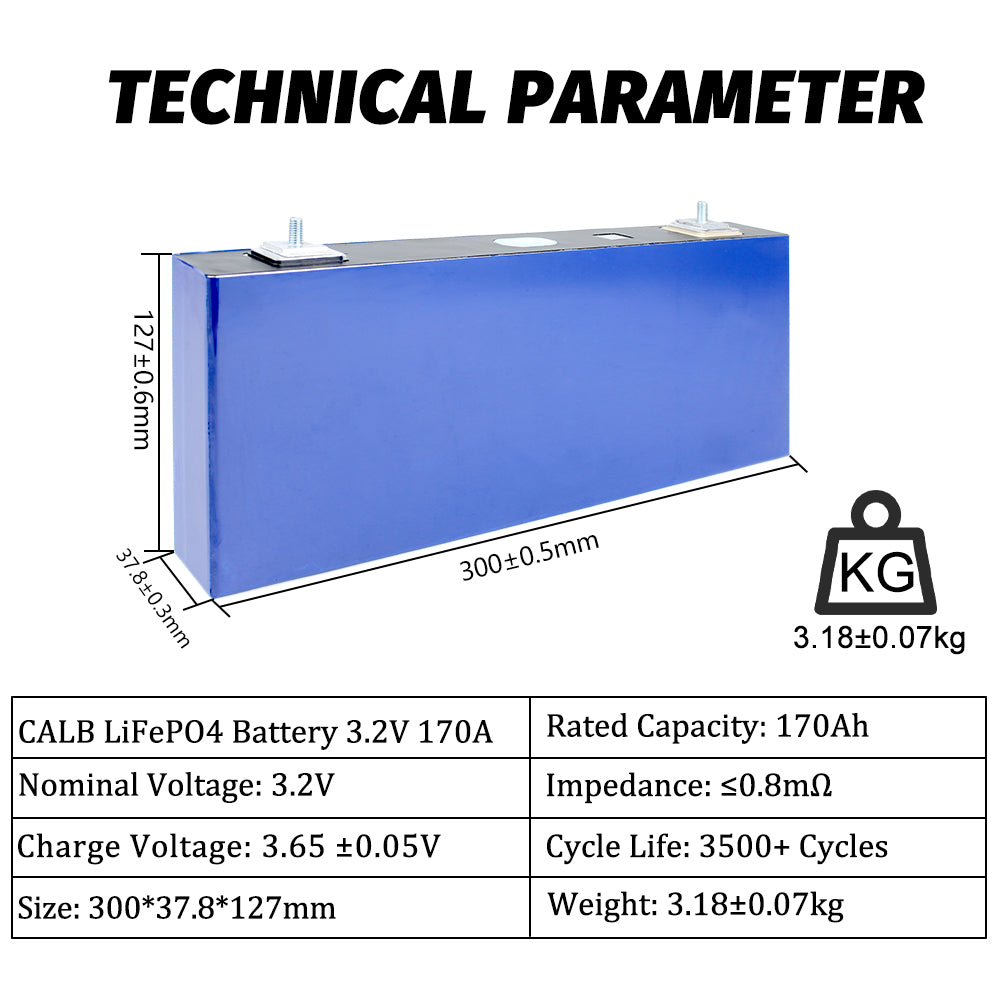 CALB 3.2V 170Ah LiFePO4 Battery Cells Cycle life 2500+ Rechargeable for Solar Energy Storage Pack RV EV Marine Power