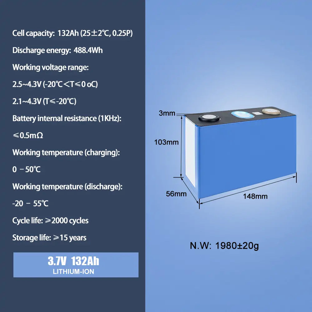 CATL 3.7V 132Ah NMC lithium Battery Cell 2000+cycle life Rechargeable For DIY 12V 24V 48V pack Solar Energy System Boat RV EV