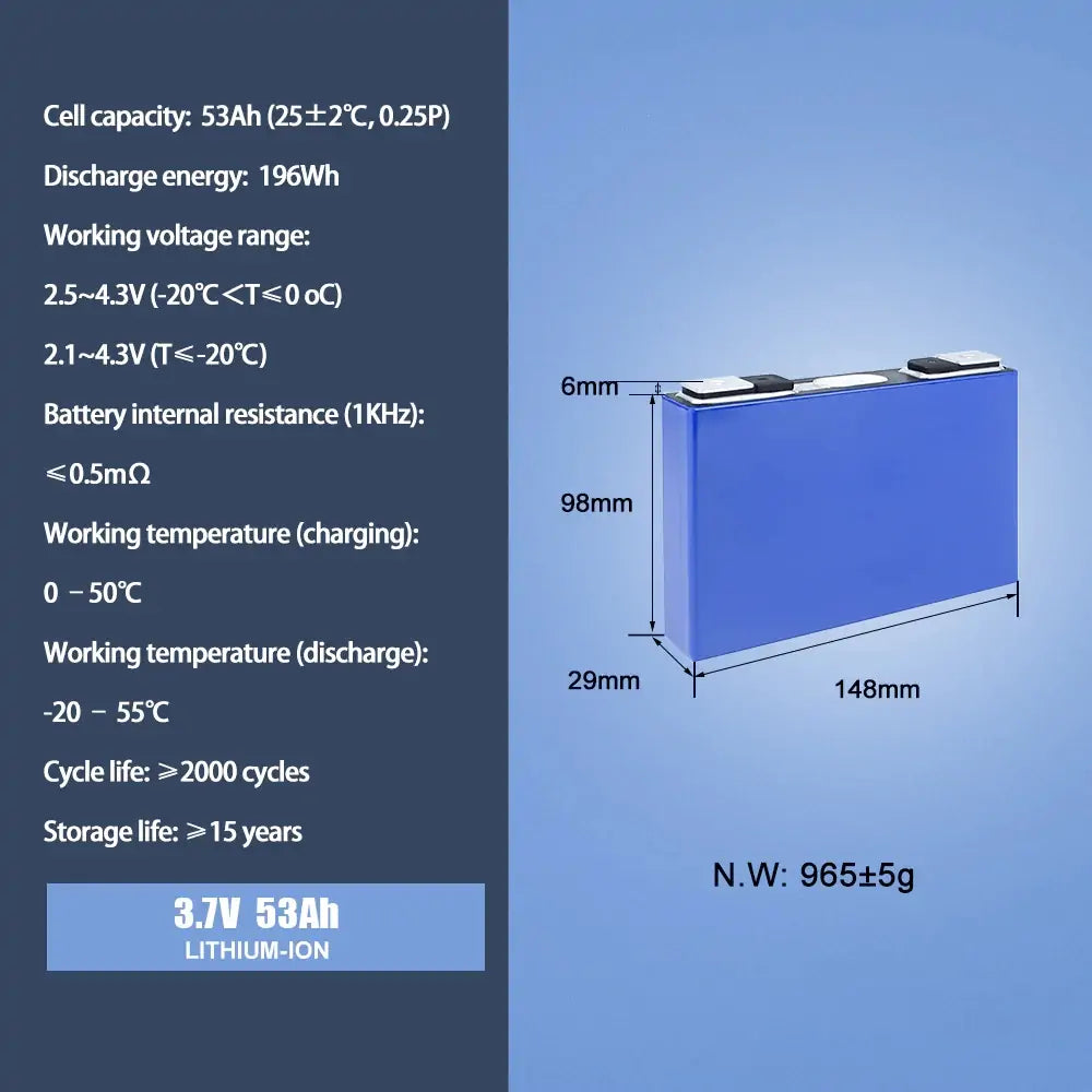 CATL 3.7V 53Ah NMC lithium-ion Battery Cell Rechargeable Deep cycle For DIY 12V 24V 48V pack Solar Energy System Boat RV EV