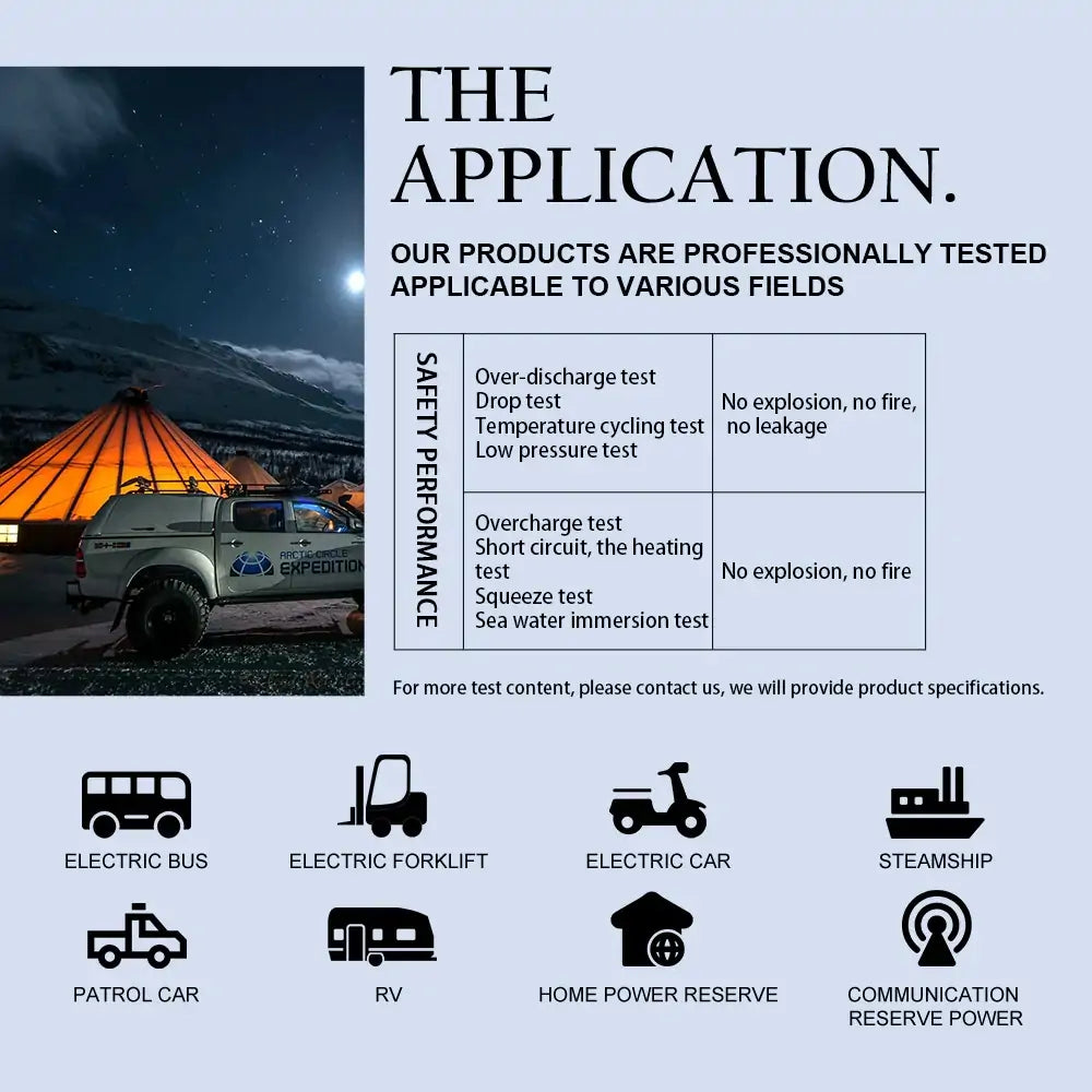 Solar energy storage, solar power system, UPS supply, Engine starting battery, Electric bicycle/motorcycle/scooter, Golf trolley/carts, RV, EV, Caravan...