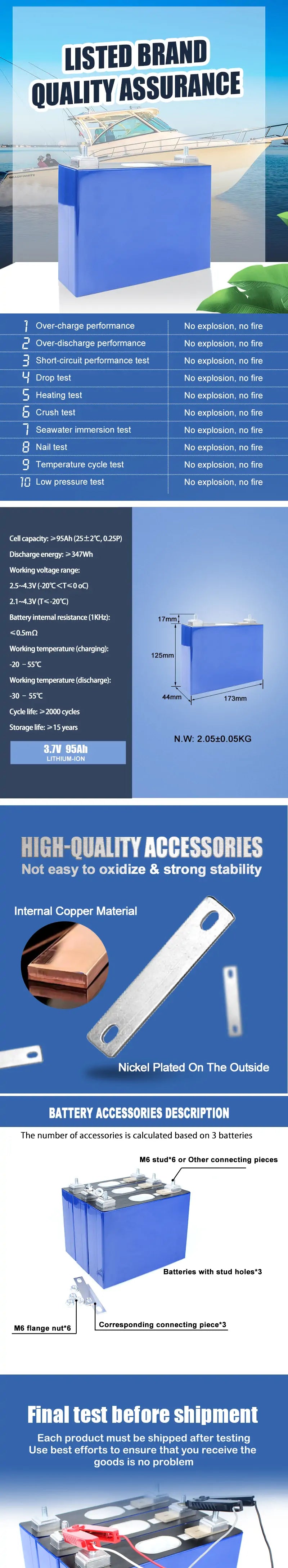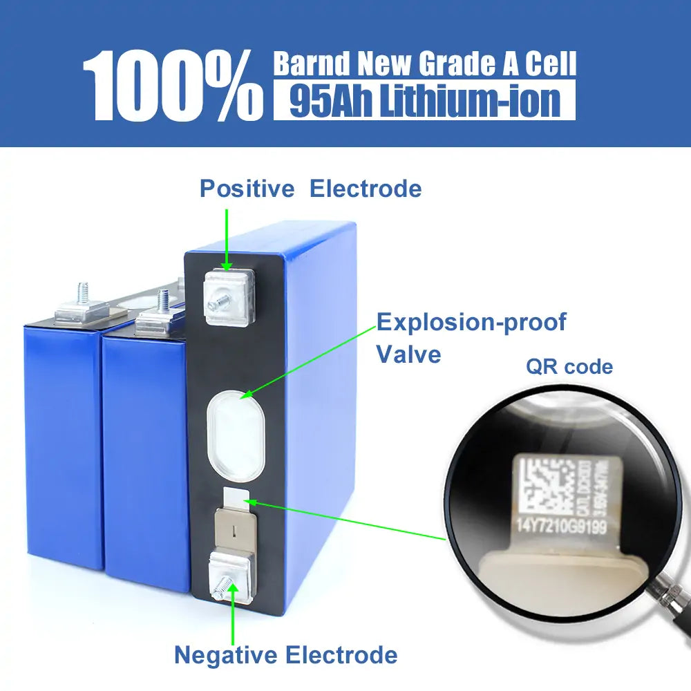 Note: The Lifepo4 CATL 3.7V 95Ah battery are original brand new cell with clear QR code. For easy assemble, we will weld M6 studs on the cell. Each battery will send 1 pcs copper busbar and 2 pcs nuts. The price to European countries are include custom clearance and tax.