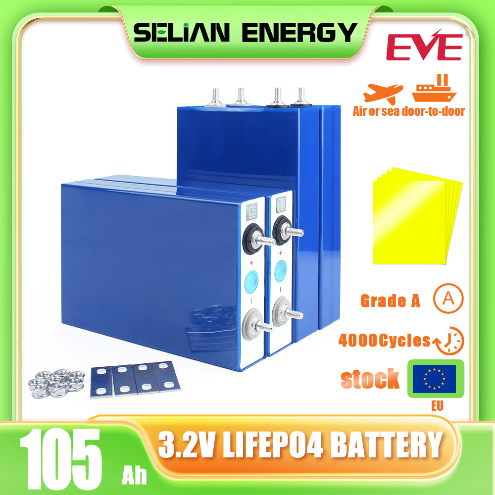 EVE LF105 Grade A Cells LiFePO4 3.2V 105Ah Battery 4-16PCS For EV RV Solar DIY 12V 24V 48V Battery Pack