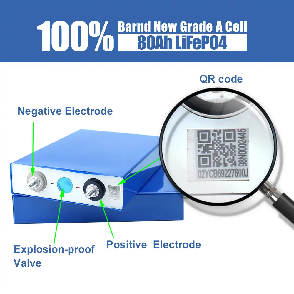 EVE-3.2V 80Ah 4PCS Lifepo4 Battery Cells 6000+Cycle life Rechargeable For Boat RV EV Solar System