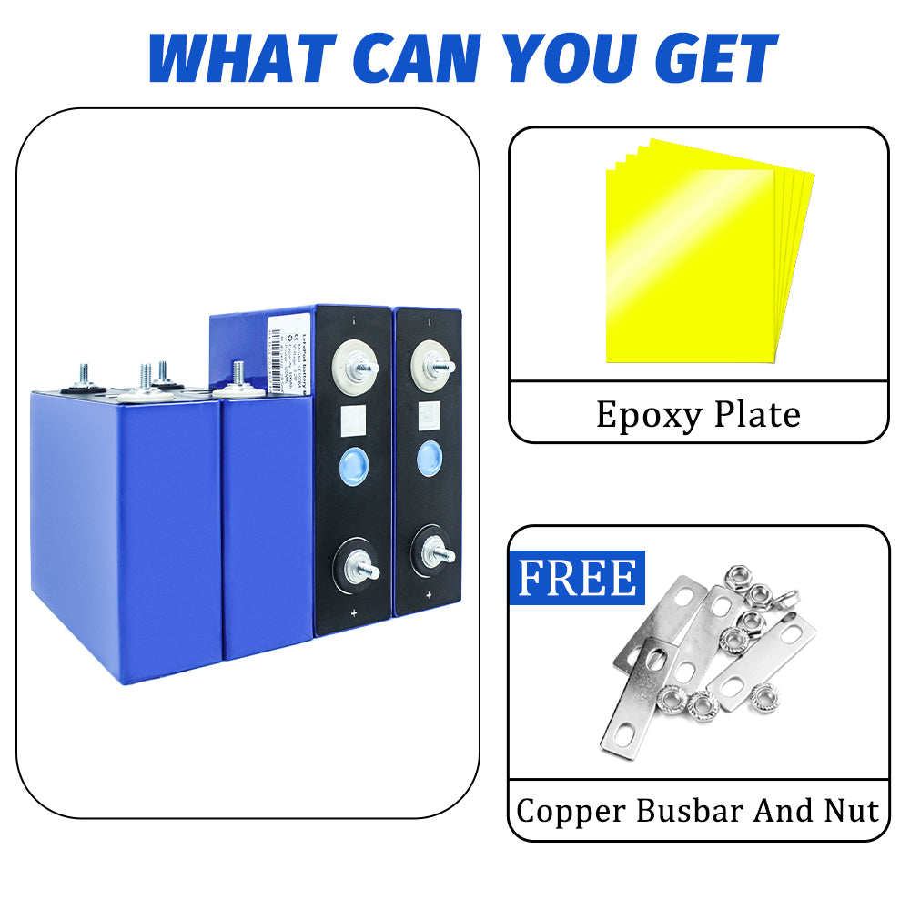 The Lifepo4 EVE 3.2V 100Ah battery are original brand new cell with clear QR code. For easy assemble, we will weld M6 studs on the cell. Each battery will send 1 pcs copper busbar and 2 pcs nuts. The price to European countries are include custom clearance and tax.If you require Check a data report, please feel free to contact us.