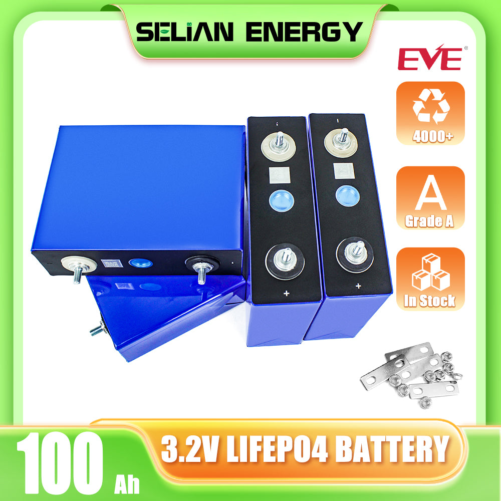 New Brand EVE 3.2V 100Ah Grade A LiFePO4 Rechargeable Battery Prismatic Cell 6000+ Cycle For Boat, RV, EV, Solar System storage