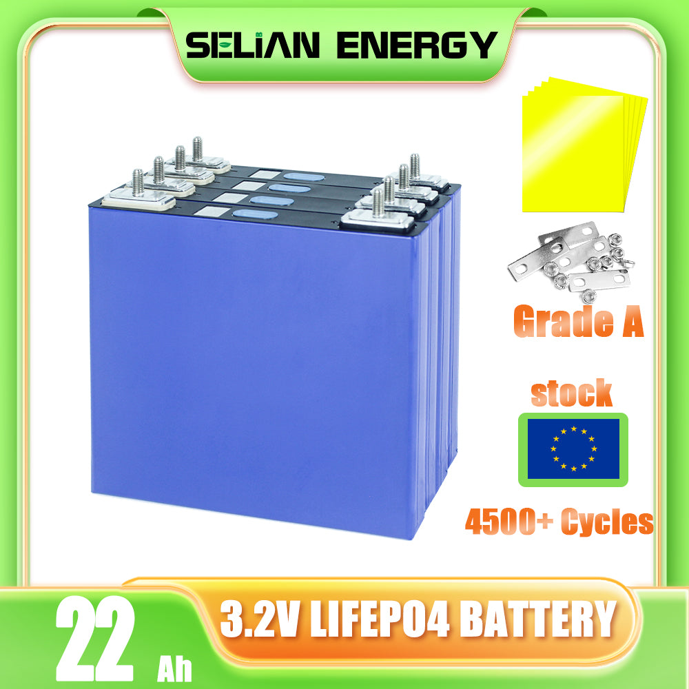 The Lifepo4 EVE 3.2V 22Ah battery are Grade A brand new cell with clear QR code. For easy assemble, we will weld M6 studs on the cell. Each battery will send 1 pcs copper busbar and 2 pcs nuts. The price to European United States countries are include custom clearance and tax.