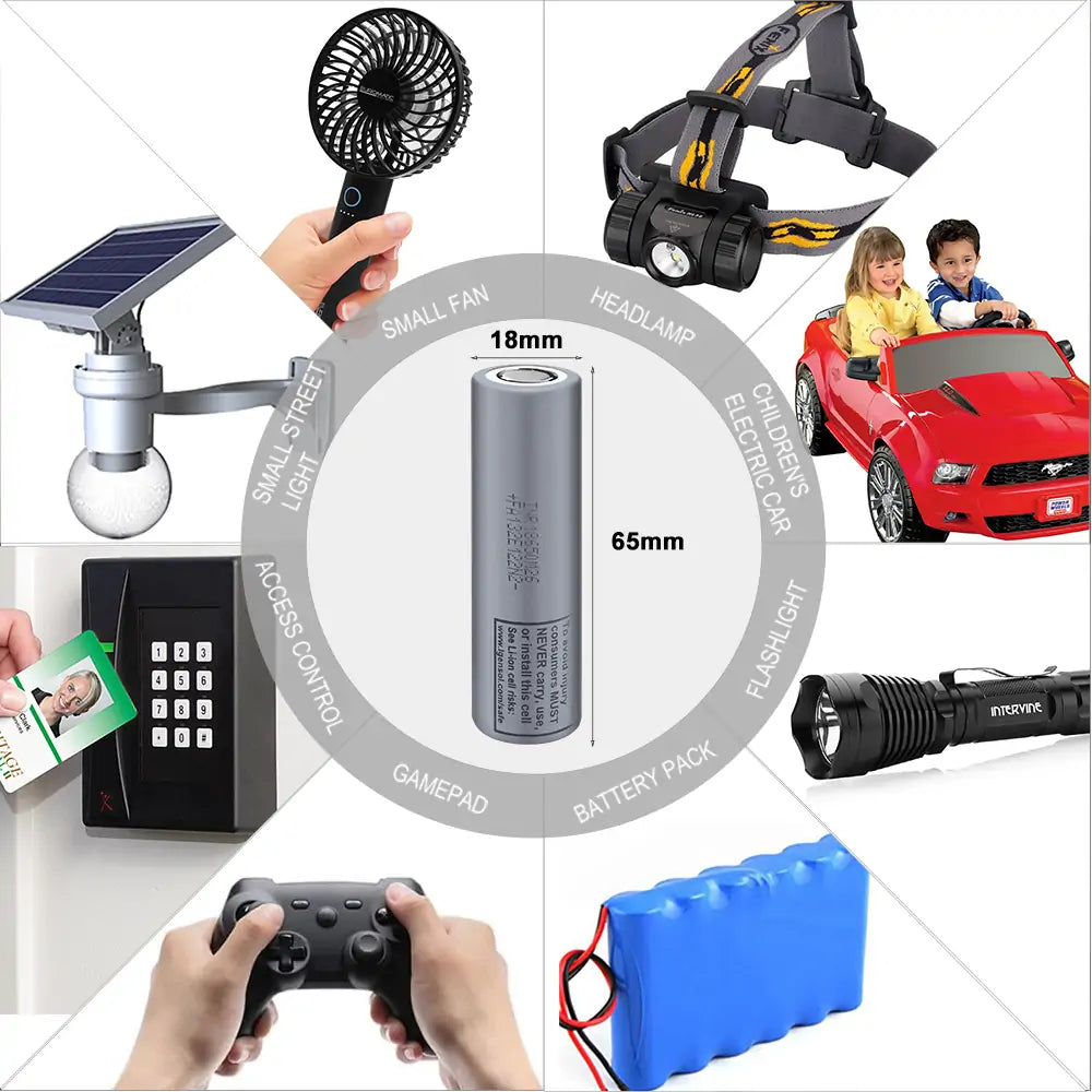 Power bank, microphone, radio microphone, gamepad, laser pointer, flashlight, headlight, LED light, camera, toy, remote control toy, mini fan, portable printer, printer emergency light, interphone, DVD portable computer, laptop, instrument, audio equipment, model antenna, and other electronic devices that require cylindrical batteries.
