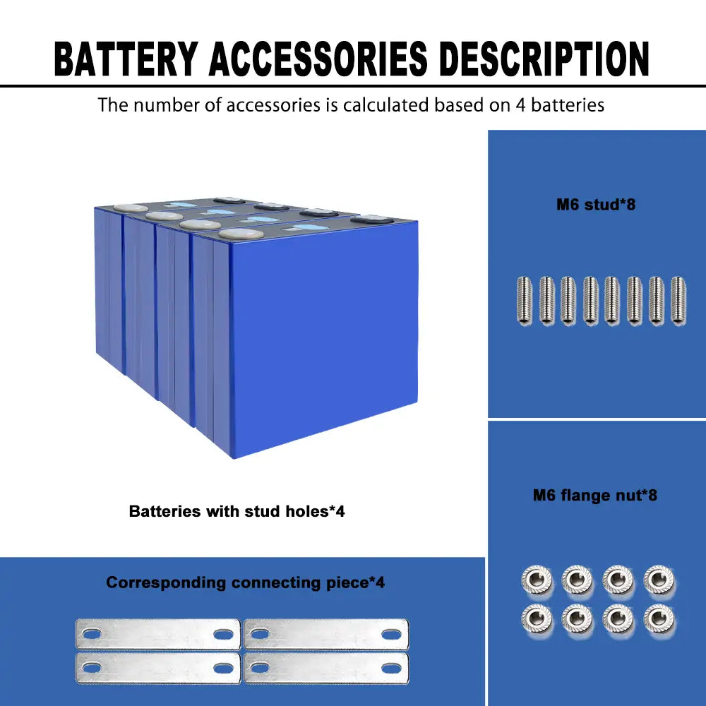 The Lifepo4 EVE 3.2V 160Ah battery are original brand new cell with clear QR code. For easy assemble, we will weld M6 studs on the cell. Each battery will send 1 pcs copper busbar and 2 pcs nuts. The price to European countries are include custom clearance and tax.