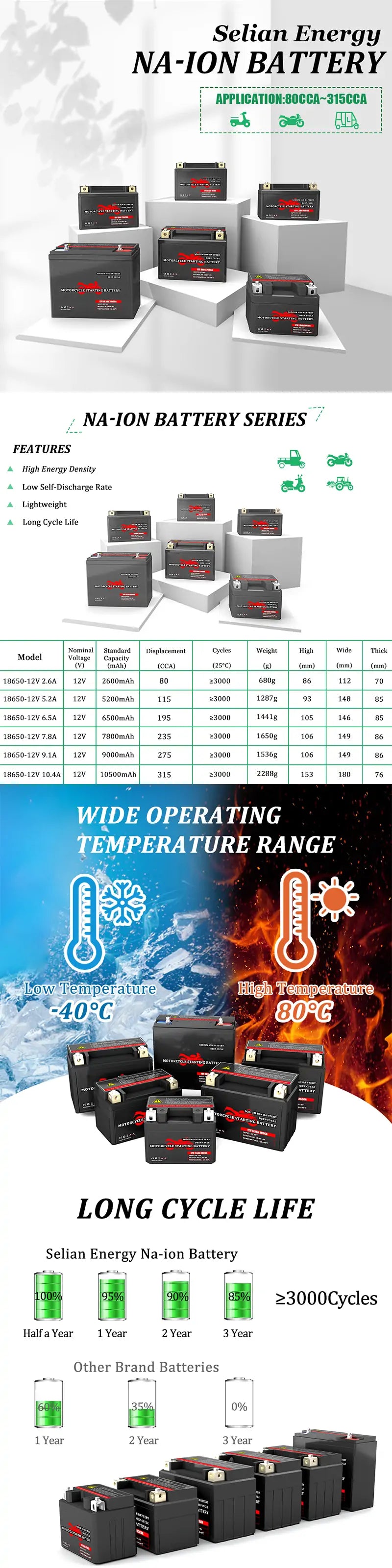 OEM DIY 12V 10.4Ah 315CCA SIB Motorcycle Starter Sodium-ion Battery Pack For DIY 12V Generator Battery Compatible Mower