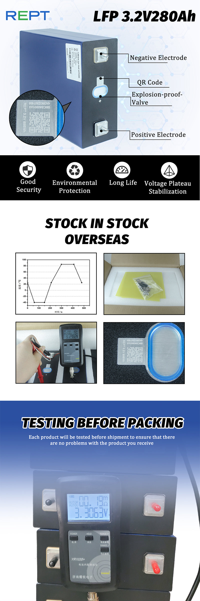 REPT 3.2V 280A Lifepo4 Prismatic Cells Rechargeable Battery for Solar Energy Storage UPS Supply