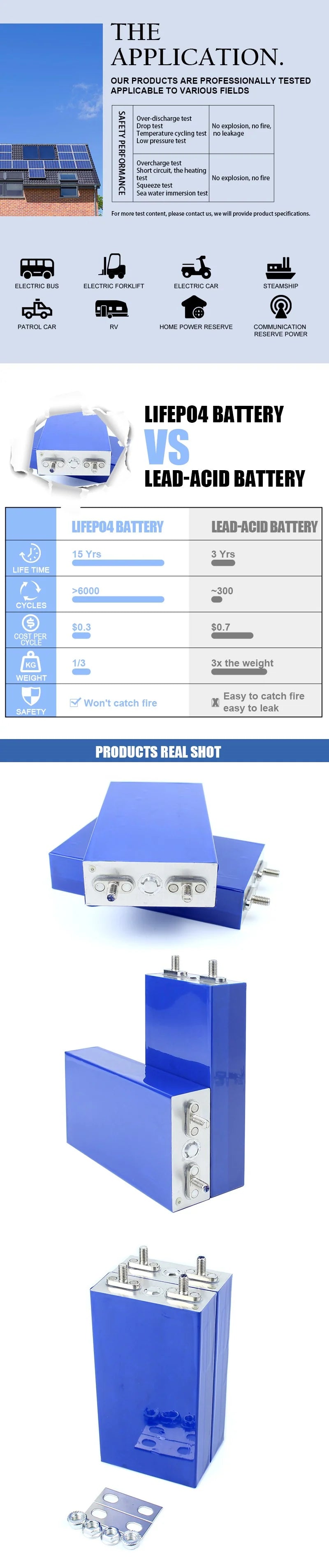 Solar energy storage, solar power system, UPS supply, Engine starting battery, Electric bicycle/motorcycle/scooter, Golf trolley/carts, RV, EV, Caravan...