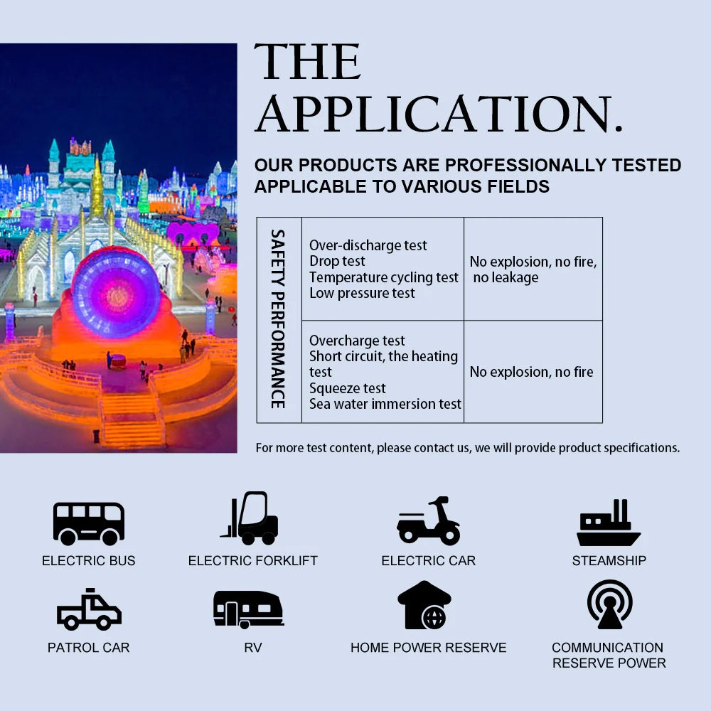 Solar energy storage, solar power system, UPS supply, Engine starting battery, Electric bicycle/motorcycle/scooter, Golf trolley/carts, RV, EV, Caravan So on